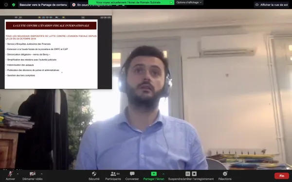 La visioconférence s'est clôturée par la présentation de tous les mécanismes de lutte contre l'évasion fiscale internationale et ses impacts en France pour les entreprises dans le cadre de leur développement.